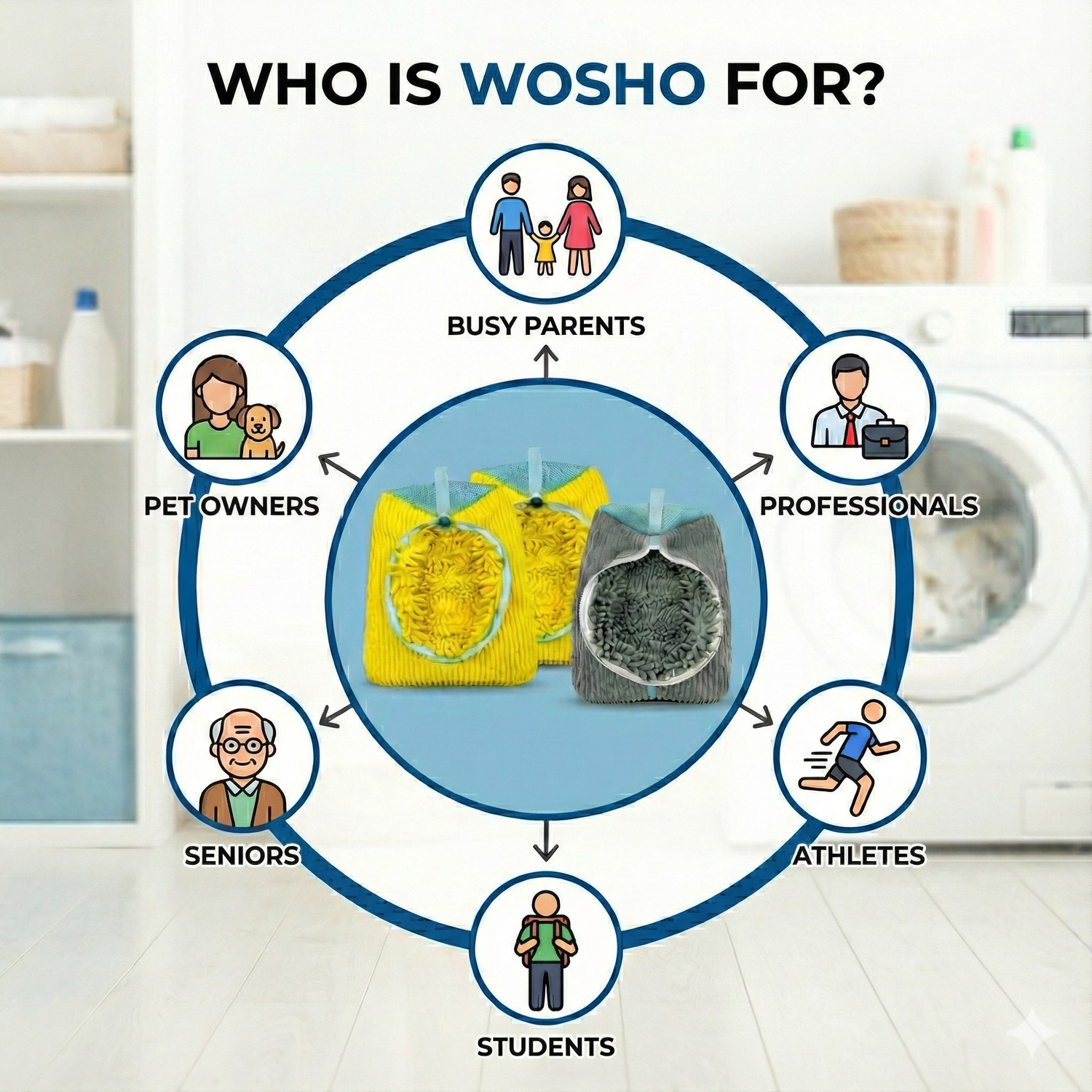 From busy parents to active students, clean shoes shouldn't be a chore. Wosho fits perfectly into any lifestyle. Whether it's gym sweat, school run scuffs, or pet messes, simply zip and wash. No scrubbing required!